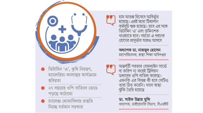 গণঅভ্যুত্থানে আওয়ামী লীগের সরকার পতনের পর ড. মুহাম্মদ ইউনূসের নেতৃত্বে দায়িত্ব নেওয়া অন্তর্বর্তী সরকার দেশের স্বাস্থ্য খাতের উন্নয়নে প্রণয়ন করা অপারেশনাল প্ল্যান (ওপি) বাতিল করে দেয়। এতে দীর্ঘদিন ধরে সফলভাবে